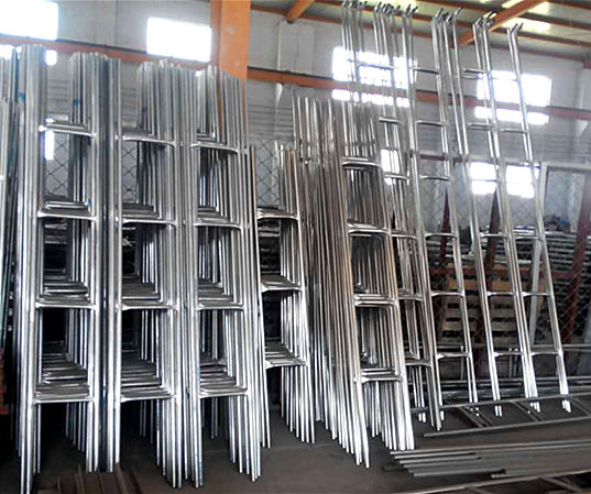 8. 較后上梯子,內(nèi)梯放在里面就可以;上外梯時(shí),外梯下面的兩個(gè)小側(cè)放在下面槽鋼上,然后用四個(gè)梯子夾鉤住,上、下面各兩個(gè),在水箱板的法蘭上打上眼,穿上螺絲擰緊即可。整臺(tái)水箱就安裝完畢了。
