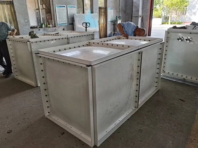 玻璃鋼水箱可分為三層結構,即內襯層、結構層和外表層。其功能各為:內襯層主要起耐腐、不滲作用;結構層承受荷載引起的應力;外保護層則用于自然老化和摩擦碰撞。