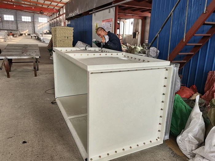 玻璃鋼模壓水箱是由SMC模壓板塊、密封材料、金屬結(jié)構(gòu)件及配管系統(tǒng)現(xiàn)場組裝而成。給設計和施工帶來很大方便。一般水箱按標準設計,水箱需要設計。可根據(jù)用戶需要組裝0.125-1500立方米的水箱。若原有水箱需要換,不需要改造房屋,適應性很強。研制的定型產(chǎn)品密封帶,該密封帶、耐水、彈性大、變型小,緊固密封。水箱整體強度高,無滲漏,無變形,保養(yǎng)、檢修方便。 玻璃鋼水箱是目前采用的新型水箱。由整體SMC水箱板拼裝而成。其特點是采用食品樹脂,因此水質(zhì)好;具有強度高,重量輕,耐腐蝕,外型美觀,使用時間長,保養(yǎng)管理方便等特點。