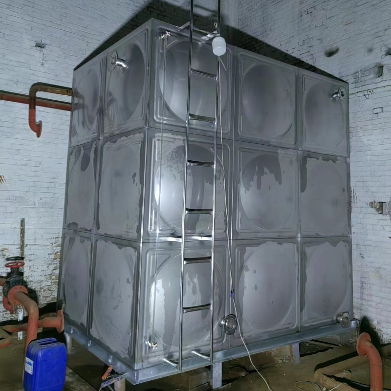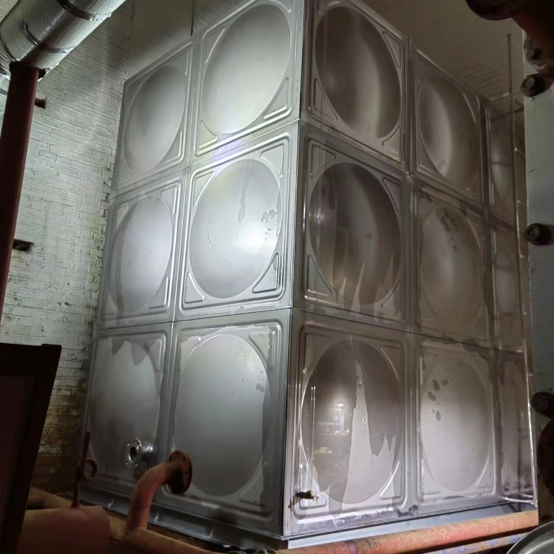 不銹鋼水箱是繼玻璃鋼水箱之后新一代水箱產品,其產品采用SUS304不銹鋼板精工模壓而成,造型美觀、經濟實用、主體以久不壞。不銹鋼水箱與其它水箱相比,具有外形美觀、重量輕、強度高、耐腐蝕、耐高溫、水質清潔,防滲,抗震,永不生青苔,水質無二次污染,安裝方便,無需維修,便干清洗等諸多優點。不銹鋼水箱常見的有不銹鋼消防水箱,方形組合式水箱、立式圓形水箱、臥式圓形水箱。采用 SUS304、SUS316L,SUS444等不銹鋼板,沖壓成型。一般沖壓成三種尺寸,分別是 1x1 米、1x0.5 米和 0.5x0.5 米三種。