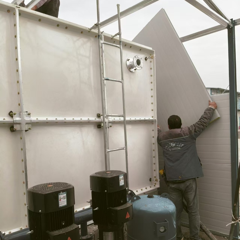 濟(jì)南市食鹽配送中心對(duì)過(guò)工地臨時(shí)用玻璃鋼消防水箱項(xiàng)目安裝完成